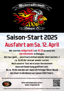 Nachdem so langsam die Tage länger und die Temperaturen akzeptable Werte bekommen, wollen wir auch dieses Jahr gemeinsam mit euch die Motorradsaison 2025 offiziell starten.